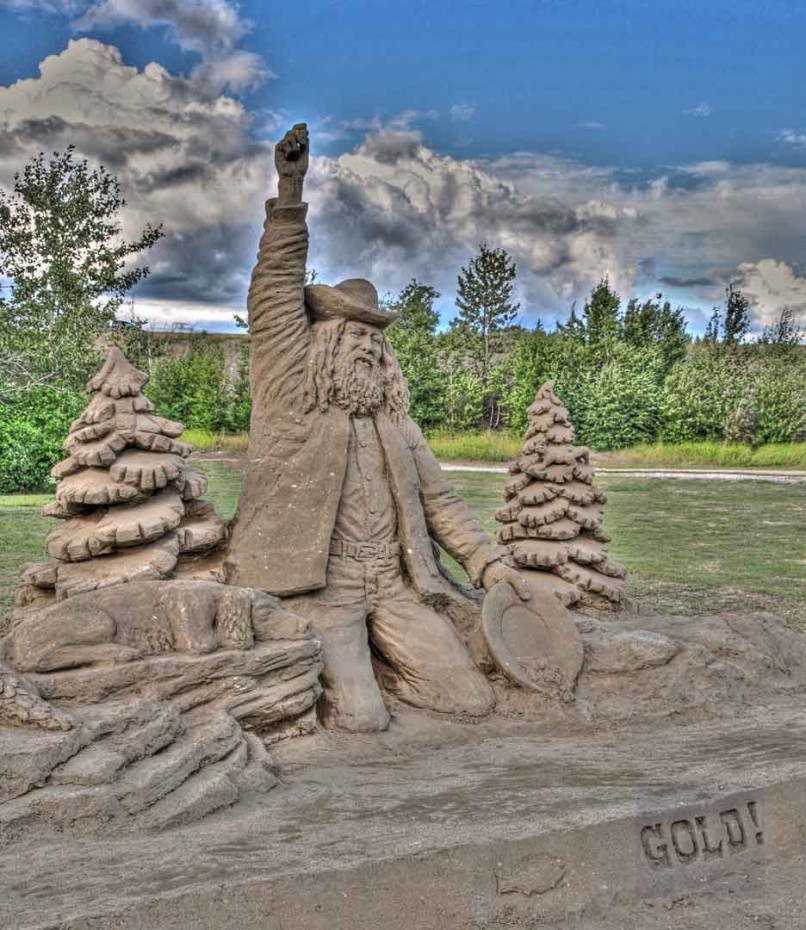 Peter used his friend from Winlaw, Tipi Doug, as his model for the quintessential gold panner. We were very pleased with the popular reception of the sand event, and also how well it linked with the Gold Panning championships held in the same park. The sponsors of the event, the FSJ Arts Council hope that this event will become an annual highlight of the Peace Country summer.